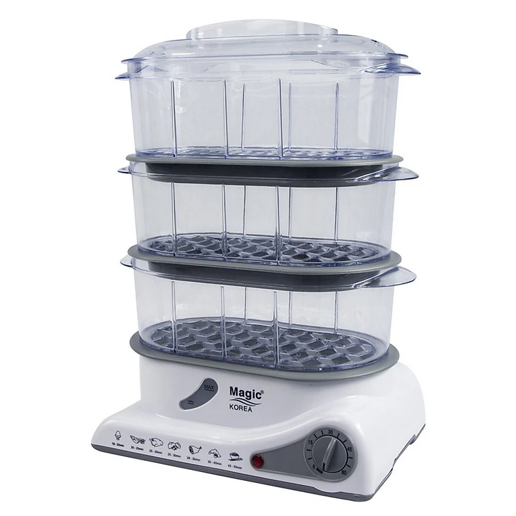 Máy hấp thực phẩm đa năng 03 tầng Magic Korea A61 sẽ giúp bạn hâm, hấp thực phẩm một cách nhanh chóng và giữ được trọn vẹn chất dinh dưỡng khi nấu. Với dung tích lớn lên đến 3 tầng riêng biệt cho bạn thực hiện nhiều món ăn cùng lúc. Đây là một sản phẩm không thể thiếu được của những người nội trợ thông minh, là một trợ thủ đắc lực giúp bạn có nhiều thời gian hơn dành cho công việc bếp núc.