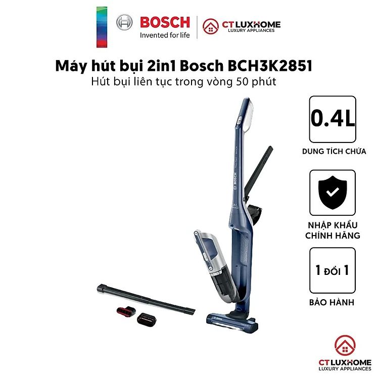 Máy hút bụi cầm tay Bosch serie 4 BCH3K2851 2in1 màu xanh 0.4L - Hàng chính hãng