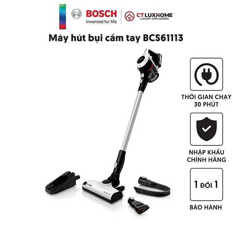 Máy hút bụi cầm tay mini Bosch BCS61113 Serie 6 Unlimited Hút liên tục 30 phút - Hàng chính hãng