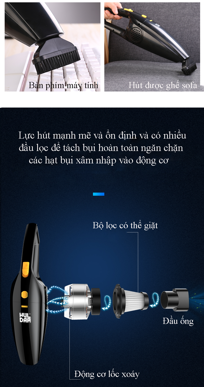Máy hút bụi cầm tay lốc xoáy Huldra thiết kế nhỏ gọn nhưng làm sạch rất hiệu quả.với nhiều thiết kế ưu việt,trọng lượng nhẹ nhàng và thân thiện với người sử dụng. Với dụng cụ lọc HEPA trong suốt và dụng cụ hút bụi có thể tháo rời.