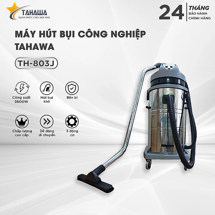 Máy hút bụi công nghiệp cao cấp hàng nhập khẩu Tahawa Nhật Bản TH-803J - Lực hút cực sạch, hút cả khô và ướt dành cho các cơ sở kinh doanh dịch vụ nhà hàng, khách sạn, khu nghĩ dưỡng du lịch