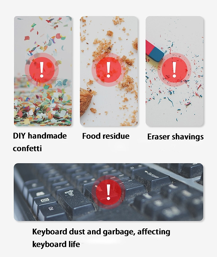 Product features: can clean the desktop, keyboard, food residue, etc.