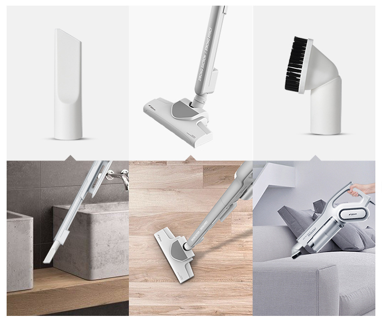Ba đầu hút đi kèm giúp hút được ở nhiều vị trí hơn: sàn nhà, salon, bàn ghế, thảm, góc tường, các khe nhỏ, gầm tủ, cầu giúp ngôi nhà luôn sạch sẽ, thoáng đãng. Dây nguồn dài 5m, vô cùng thuận tiện để vệ sinh nhà cửa. Ngoài ra, sản phẩm được trang bị cán và tay cầm được thiết kế 2 trong 1 có thể tháo rời và nhiều đầu hút khác nhau, rất thuận tiện cho bạn khi sử dụng.