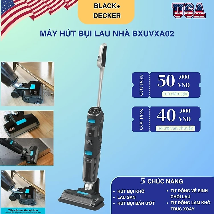 Máy hút bụi không dây lau sàn thông minh 5 chức năng Black+Decker BXUVXA02 -HÀNG CHÍNH HÃNG