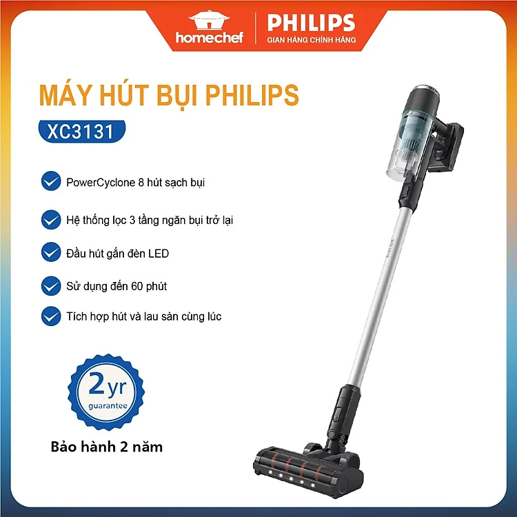 Máy hút bụi và lau sàn không dây dạng cán, máy hút bụi cầm tay Philips XC3131/01, bảo hành 2 năm | Hàng Chính Hãng