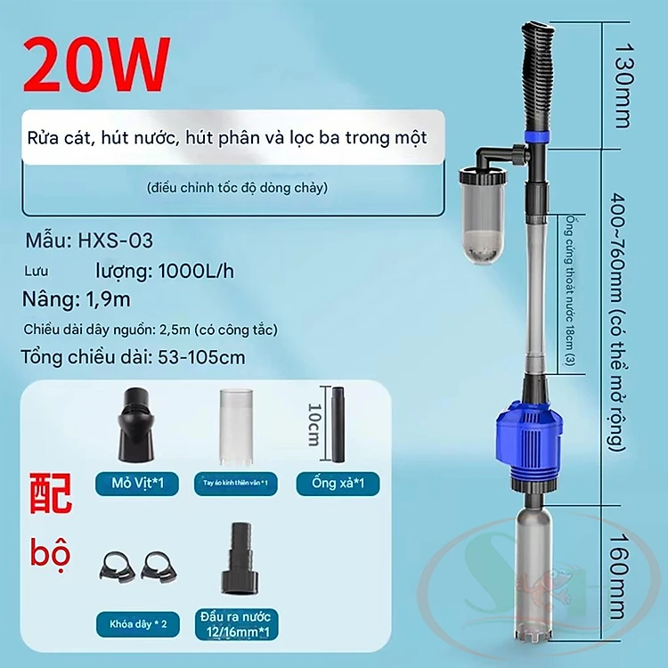 Máy hút cặn Sunsun HXS 02 / 03 Multi Function vệ sinh đáy nền thay nước bể cá tép thủy sinh