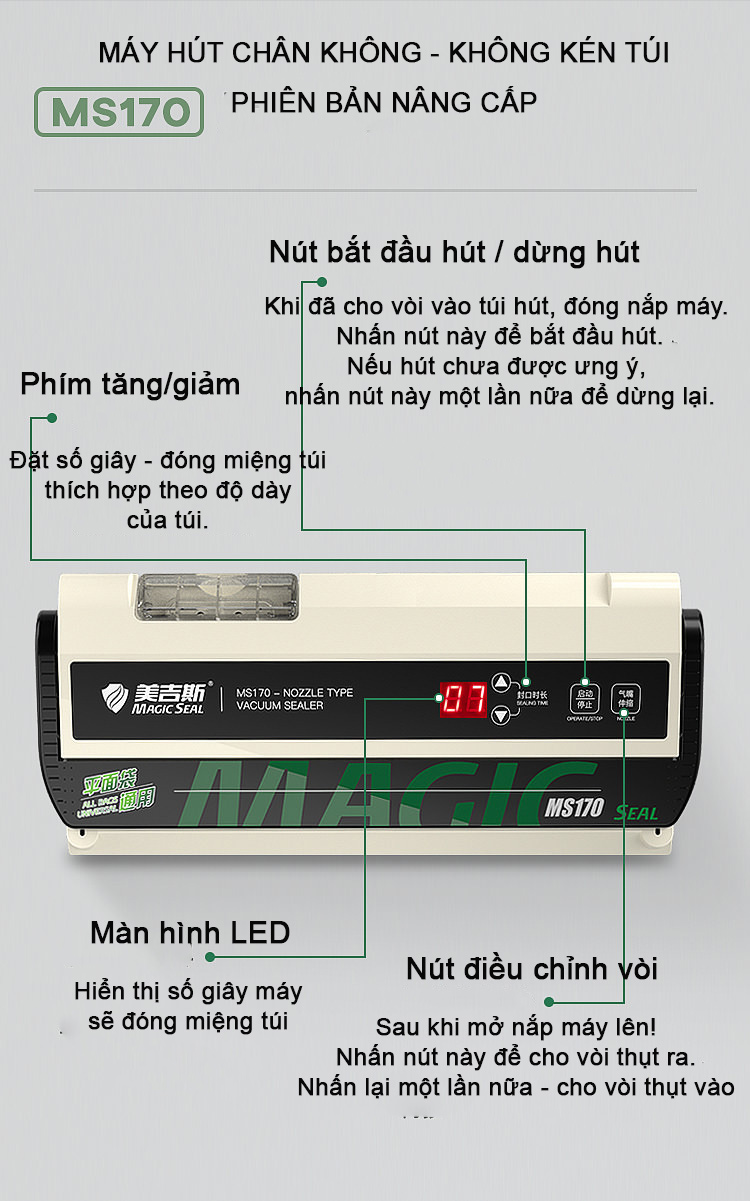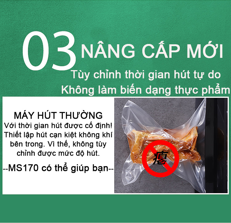Từ đó Megis đã nghiên cứu và tạo ra phiên bản MÁY HÚT CHÂN KHÔNG KHÔNG KÉN BAO BÌ MS 170 nhằm thỏa mãn tối đa nhu cầu người tiêu dùng ở Việt Nam.