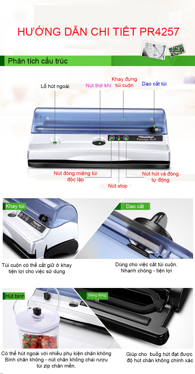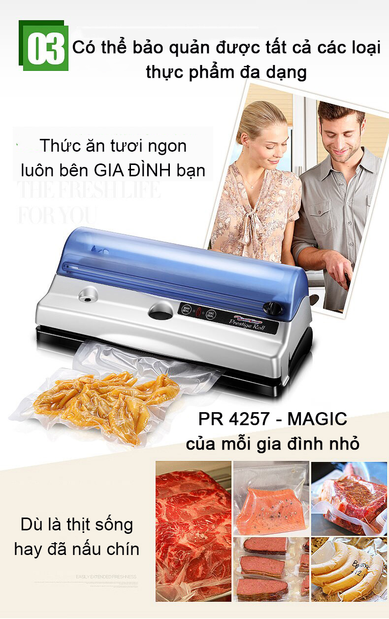 Từ đó, với hơn 10 năm kinh nghiệm sản xuất máy hút chân không, hãng đã cho ra đời sản phẩm Máy hút chân không mini gia đình cao cấp PR 4257 với mục tiêu đáp ứng mọi nhu cầu bảo quản thực phẩm của các gia đình hiện đại - và tạo độ tiện lợi hơn về tiết kiệm điện năng và thời gian cho các bà nội trợ thông minh - đầu bếp tài ba trong cuộc sống công việc bận rộn ngày nay.