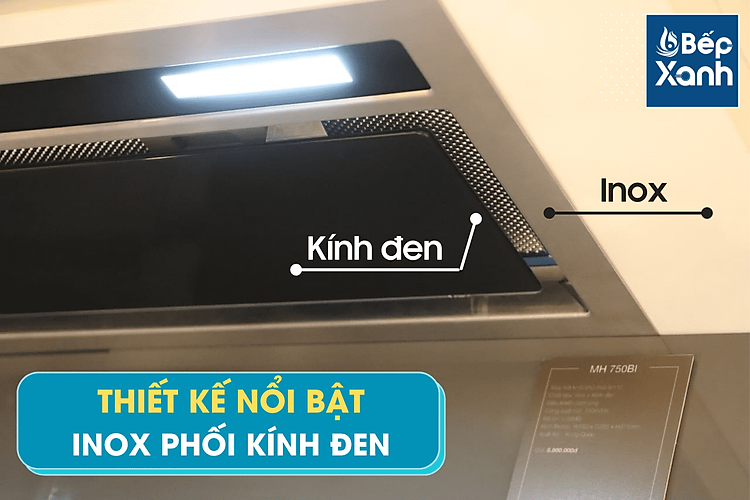 Viền máy hoàn thiện tốt với chất liệu inox không hoen gỉ, bền bỉ theo thời gian. Phần giữa máy là kính đen che lại vỉ dầu, tránh bụi bẩn. Sự kết hợp 2 màu sáng tối giúp máy khử mùi trở nên nổi bật hơn.