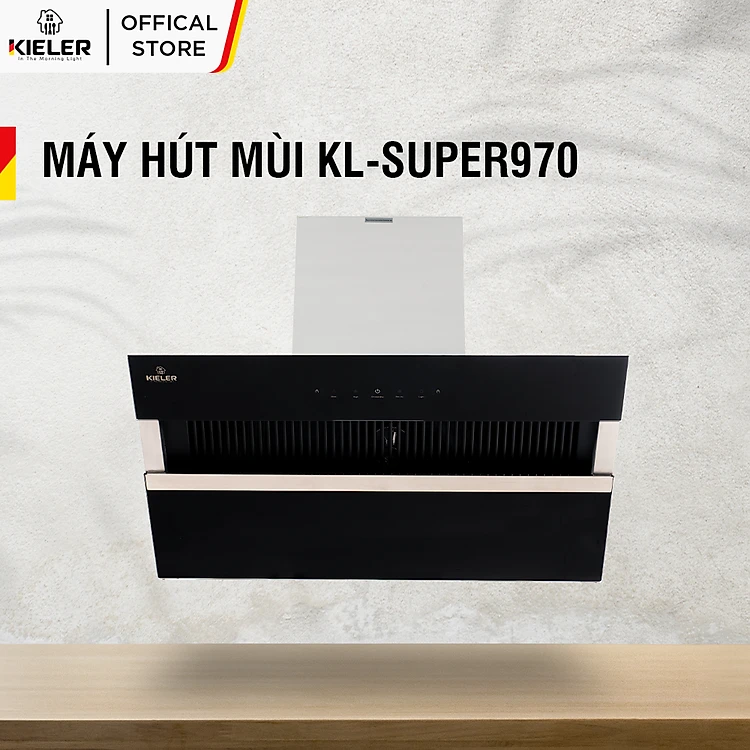 Máy hút mùi KIELER KL-SUPER970 công suất hút cao, không gây tiếng ồn, kiểu vát kính sang trọng, điều khiển bằng cử chỉ - Hàng Chính Hãng