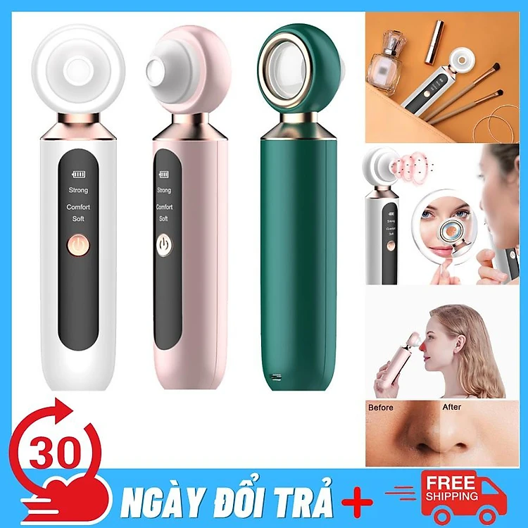 • 3 đầu hút bằng silicon có độ hút mạnh mẽ có thể làm sạch da và hút các đầu mụn trên da