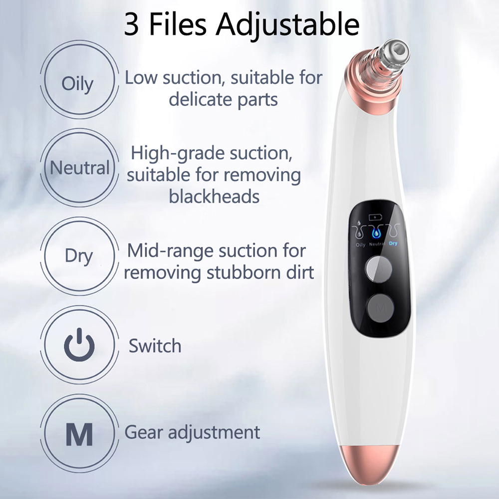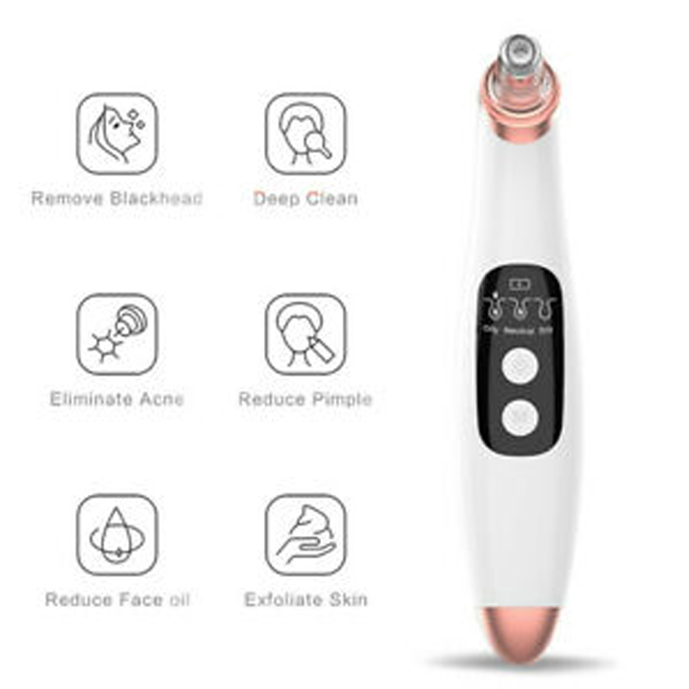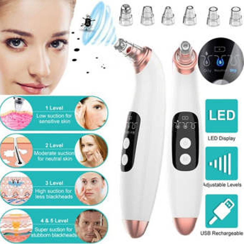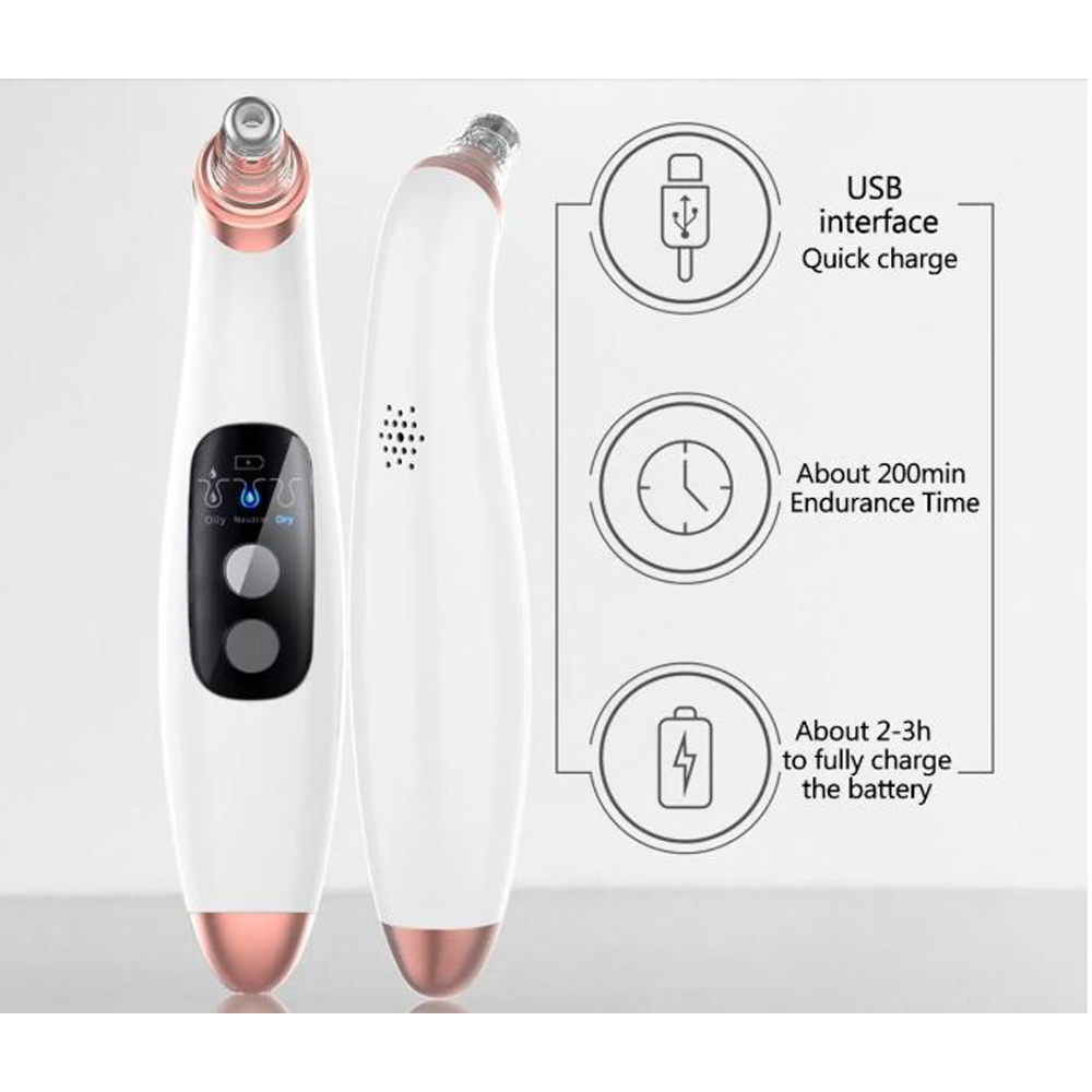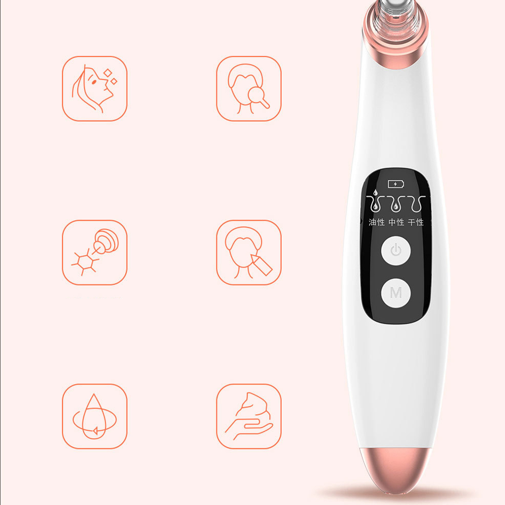 Máy hút mụn đầu đen - Dầu nhờn cầm tay mini - Làm mờ nếp nhăn - Kèm 6 đâu hút mụn và 3 chế độ có dây cáp sạc - L1915