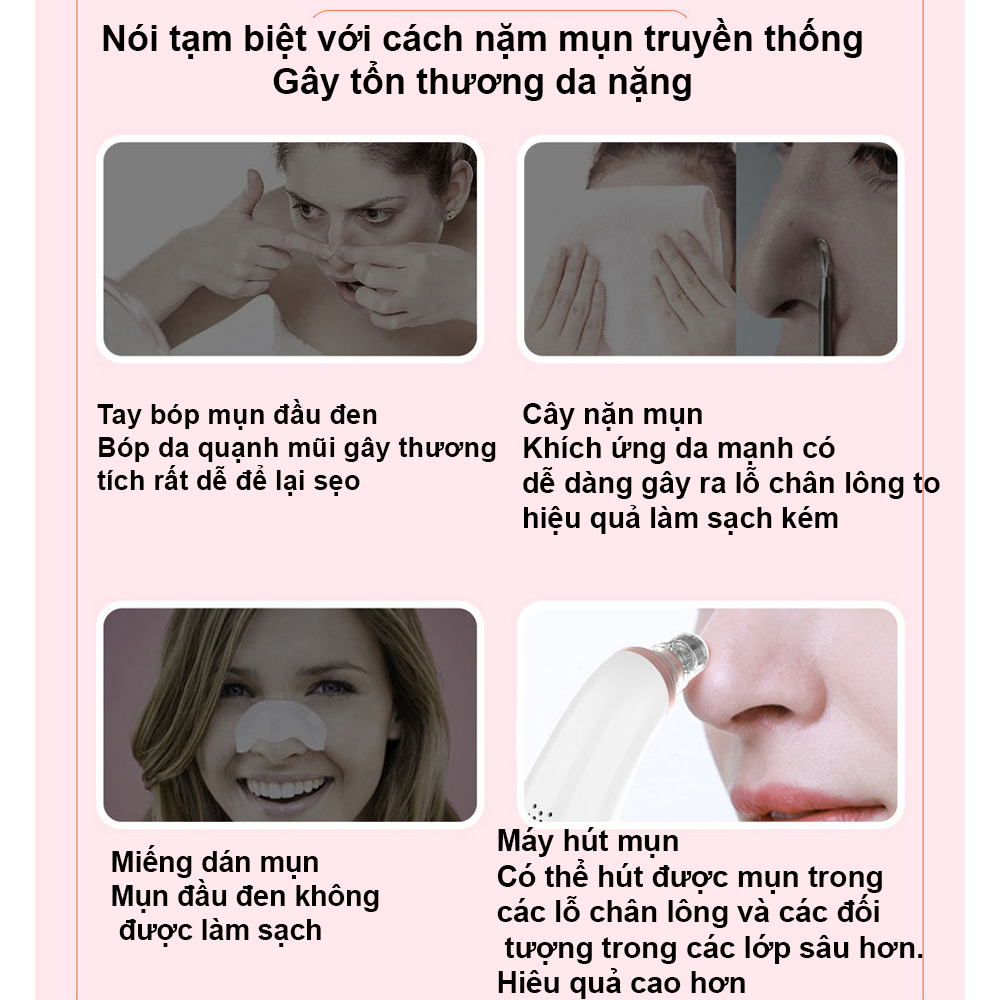 Bộ dụng cụ nặn mụn đầu đen có thể tẩy tế bào chết, săn chắc, làm sạch lỗ chân lông, loại bỏ mụn trứng cá và mụn đầu đen. Cũng như chức năng nén nóng.