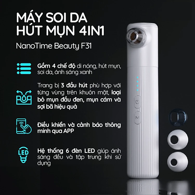 Máy hút mụn soi da 4 in 1 NanoTime Beauty F31 - Mở mụn, soi da, hút mụn, tiệt trùng