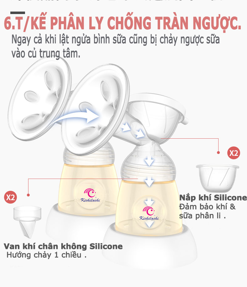 Sản phẩm tiếp xúc với sữa mẹ, phải được làm bằng chất liệu an toàn không chứa BPA và không có bất kỳ hóa chất độc hại nào. Máy hút sữa được thiết kế đặc biệt thông minh, hoàn toàn không có sự tiếp xúc nào giữa sữa và ống hút. khả năng chống trào ngược .
