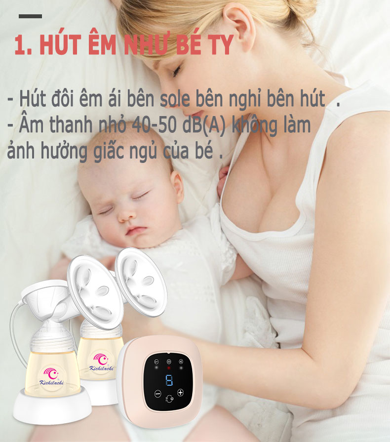 Máy hút sữa cao cấp Kichilachi chất liệu PPSU, sạc tích điện cảm ứng, núm ty chống đầy hơi
