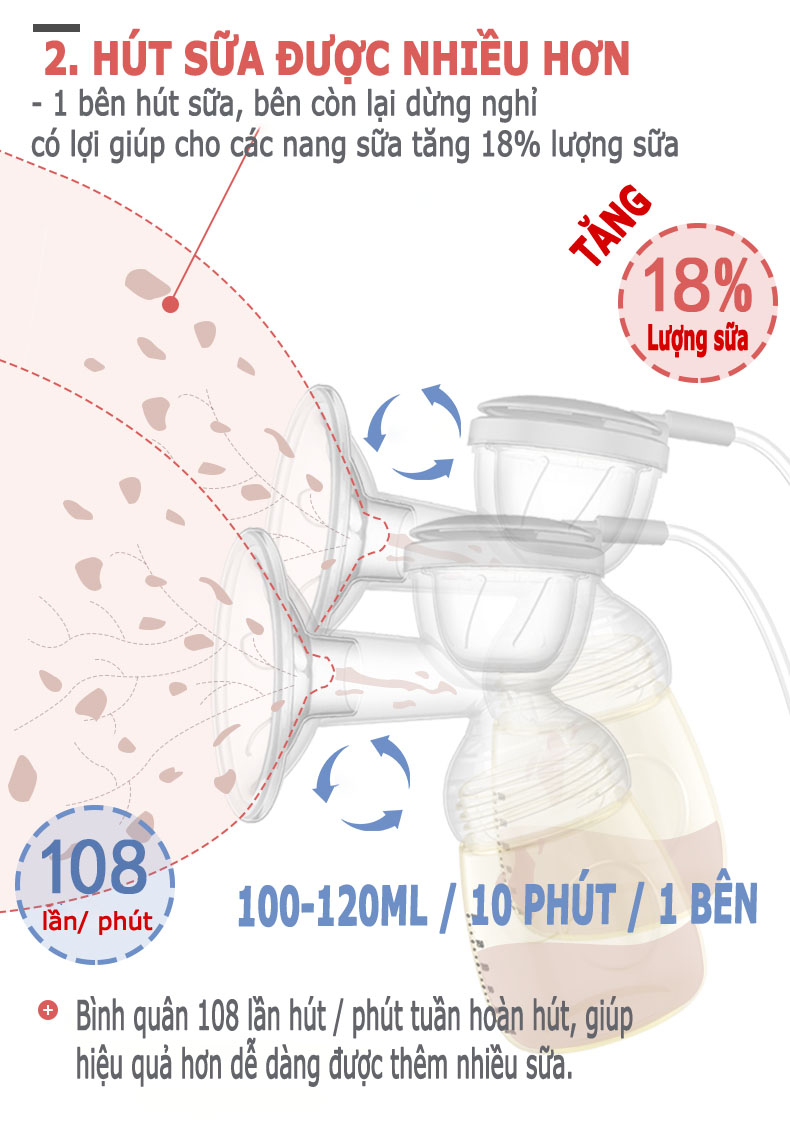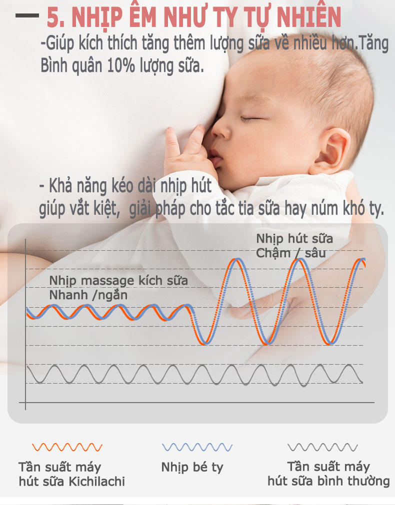 Sử dụng công nghệ nhịp sóng Rhythmic Wave mô phỏng chu kỳ trẻ bú và nuốt sữa tự nhiên để tạo ra dòng sữa nhanh và hiệu quả. Giúp mẹ cảm giác hút sữa tự nhiên và thoải mái hơn.