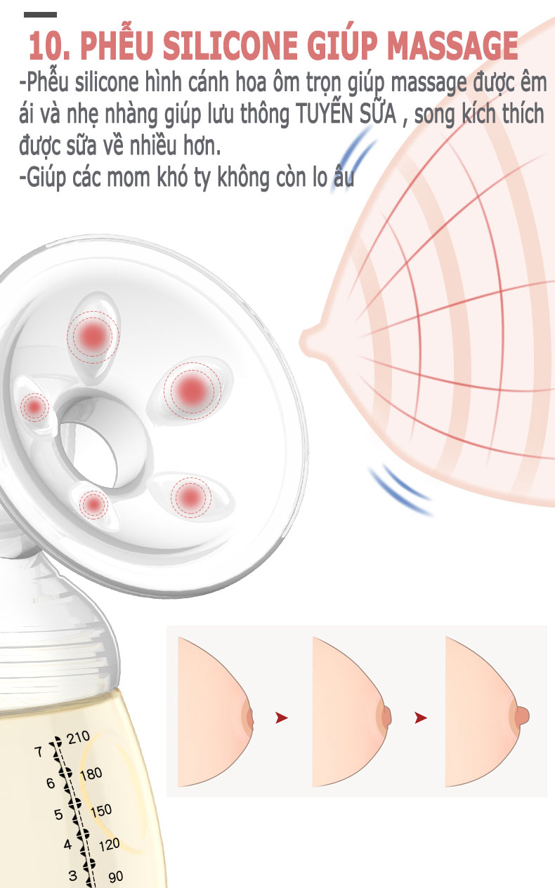 đệm mát xa mềm nhẹ nhàng kích thích dòng sữa
