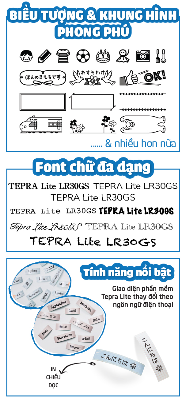 - Máy in nhãn nhỏ gọn, tiện lợi cho sử dụng mọi lúc mọi nơi, không cần đến máy tính.