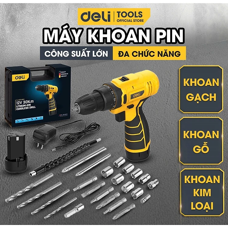 Máy Khoan Bắt Vít Deli Chính Hãng Pin 12V - Nhỏ Gọn, Tiện Dụng - Dùng Cho Sửa Chữa Vật Dụng - DL600012