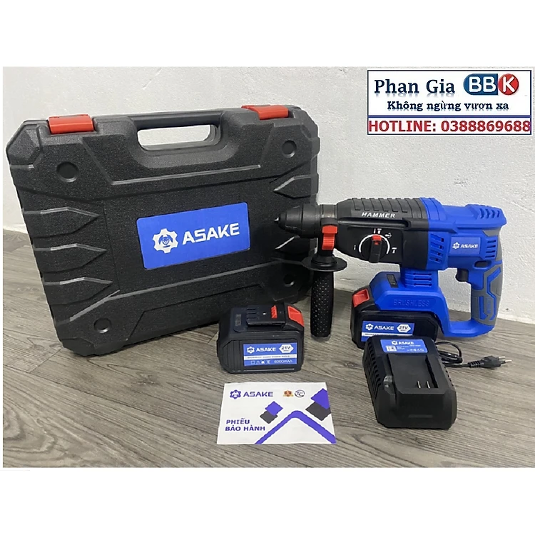 Máy Khoan Bê Tông Pin ASAKE 21V Pin 15 Cell, Máy Khoan Đục Bê Tông Siêu Shỏe Siêu Bền Tiện Dụng Cho Công Trình - Bảo Hành Chính Hãng