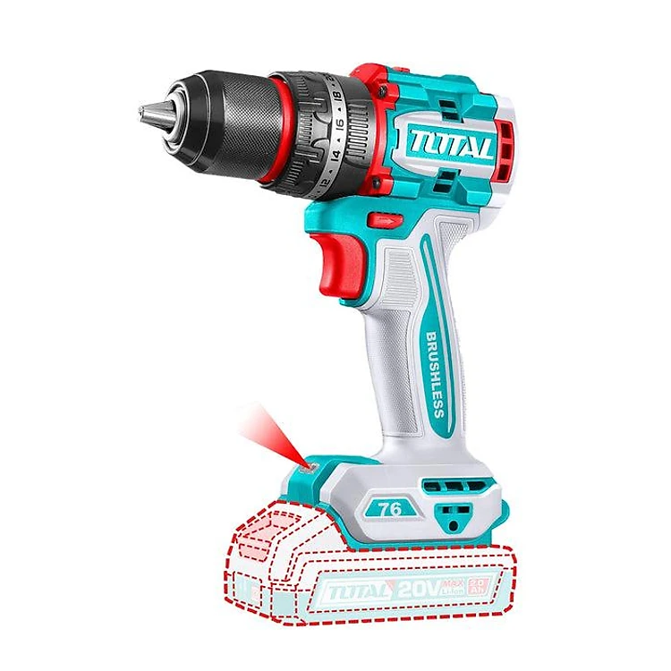 MÁY KHOAN BÚA KHÔNG CHỔI THAN DÙNG PIN 20V 76NM TOTAL TIDLI20768 - HÀNG CHÍNH HÃNG