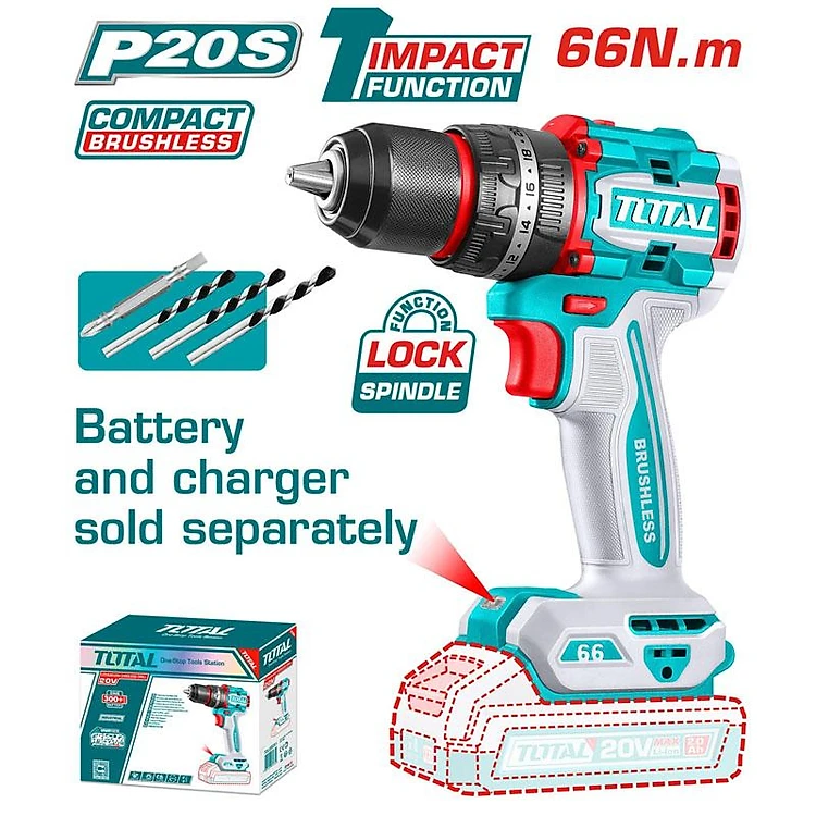MÁY KHOAN BÚA KHÔNG CHỔI THAN DÙNG PIN 20V (KHÔNG KÈM PIN & SẠC) 66NM TOTAL TIDLI206681 - HÀNG CHÍNH HÃNG