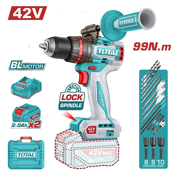 MÁY KHOAN BÚA KHÔNG CHỔI THAN DÙNG PIN 42V TIDLI429982 TOTAL -HÀNG CHÍNH HÃNG