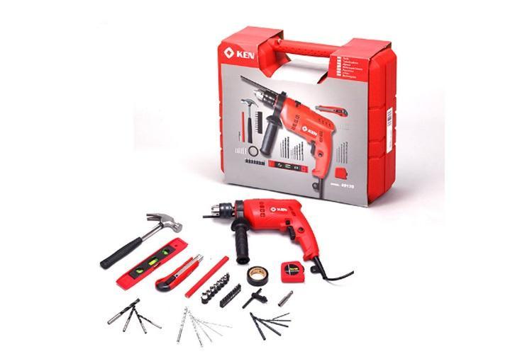 Máy khoan động lực 13mm Ken 6913ERD là thiết bị chuyên dùng rộng rãi trong xây dựng, công nghiệp, sửa chữa,…. Máy được trang bị động cơ 580W với tốc độ không tải 2.500 vòng/phút đáp ứng khả năng khoan tường 13mm, thép 10mm và gỗ 25mm.