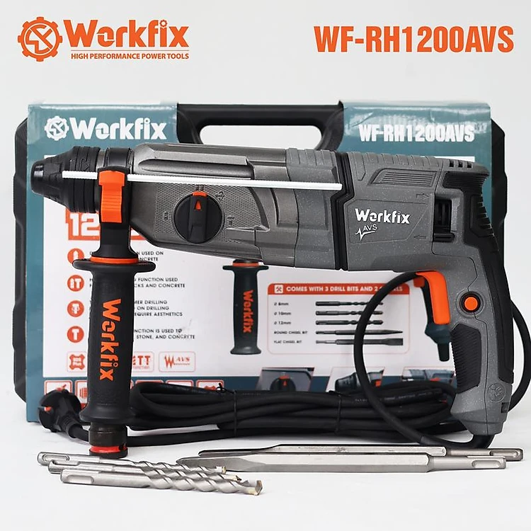 Máy Khoan Đục Bê Tông 3 Chức Năng Dùng Điện 220V Workfix - WF-RH1200AVS - Công Suất 1200W - Có Giảm Rung AVS - Động Cơ Từ Lõi Đồng Bao Khỏe, Bao bền bỉ