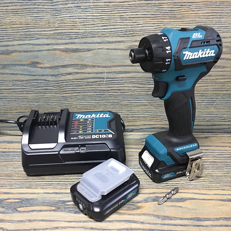 Máy khoan vặn vít dùng pin 12V không chổi than Makita (kèm sạc và 2 pin 2.0Ah)