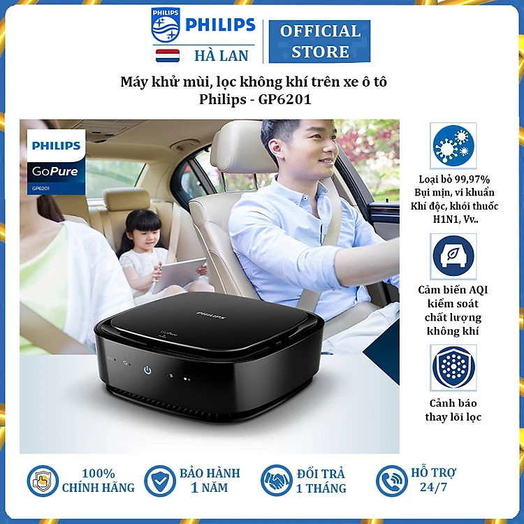 Máy Khử Mùi Lọc Không Khí Ô Tô Thương Hiệu Cao Cấp Philips GP6201 - Công suất: 3.7W - Hàng Nhập Khẩu