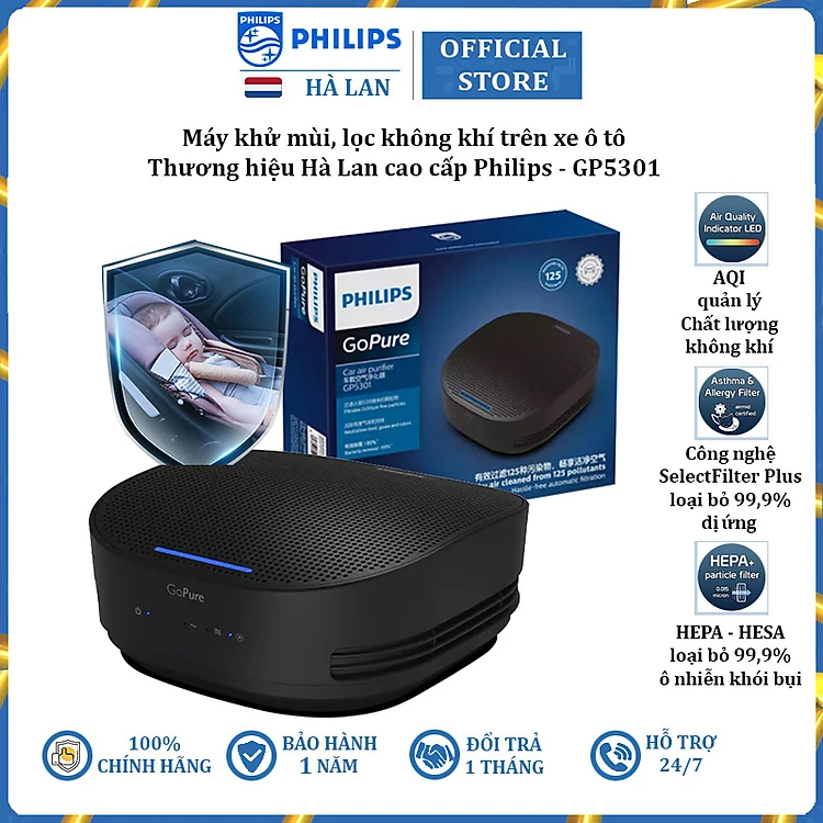 Máy khử mùi, lọc không khí trên xe ô tô thương hiệu Philips GP5301 - Hàng chính hãng