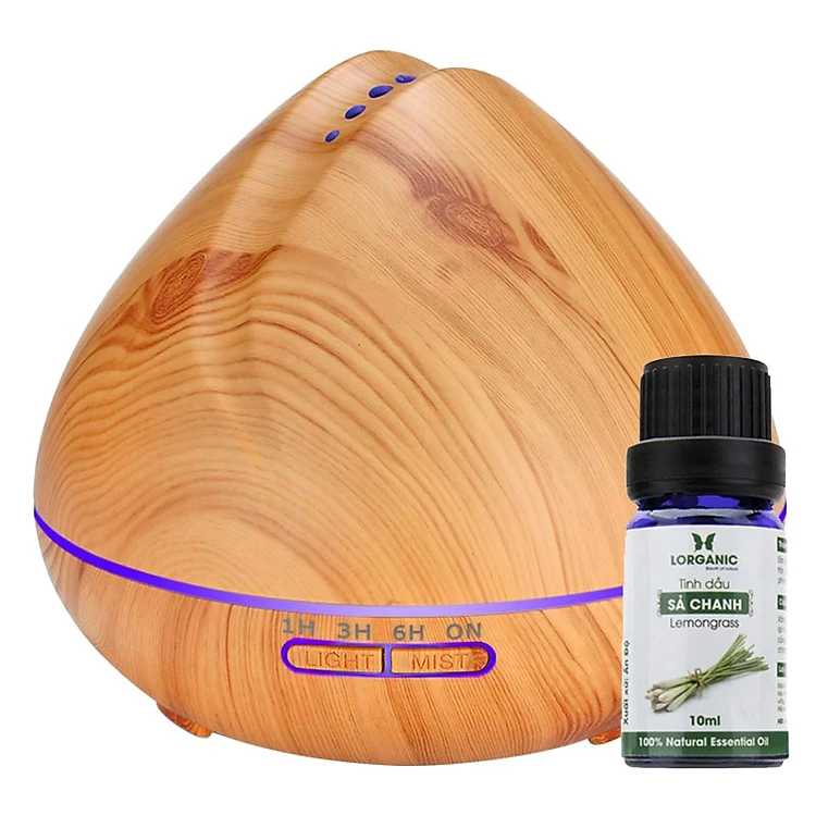 Máy Khuếch Tán Tinh Dầu Quả Đào Gỗ Vàng Lorganic Fx2024 + Tinh Dầu Sả Chanh Lgn0275 (10ml) với hương thơm nhẹ nhàng, tinh tế, thơm lâu.