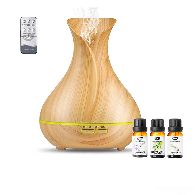 Máy Khuếch Tán Tinh Dầu Tulip | Phun Sương Sóng Siêu Âm Giúp Đuổi Muỗi | Tặng 3 Chai Tinh Dầu Kobi Sả Chanh + Bạc Hà + Oải Hương Nhập Khẩu Ấn Độ | Xông Phòng 30m2