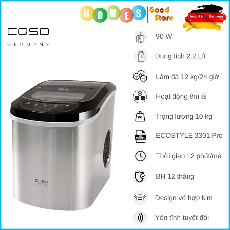 Những viên đá mát lạnh ngày nay không còn xa lạ với mỗi gia đình, hầu như gia đình nào cũng có. Ngoài công dụng dùng để giải khát, nó còn một trong những nguyên liệu không thể thiếu của các món đồ uống lạnh hay trong việc bảo quản đồ ăn. Đá lạnh còn có tác dụng làm đẹp, giảm sưng phù nề… Ngày nay việc làm đá của nhiều gia đình thường sử dụng ngăn đông của tủ lạnh để làm đá, tuy nhiên việc sử dụng ngăn đông để vừa làm đá vừa bảo quản thực phẩm tươi sống sẽ làm cho đá không được tinh khiết, ám mùi và không đảm bảo vệ sinh. Máy Làm Đá Caso 3301 Pro Icemaster Ecostyle sẽ giúp chúng ta loại bỏ được những nhược điểm kia, mang đến cho gia đình những viên đá tinh khiết và đảm bảo nhất.