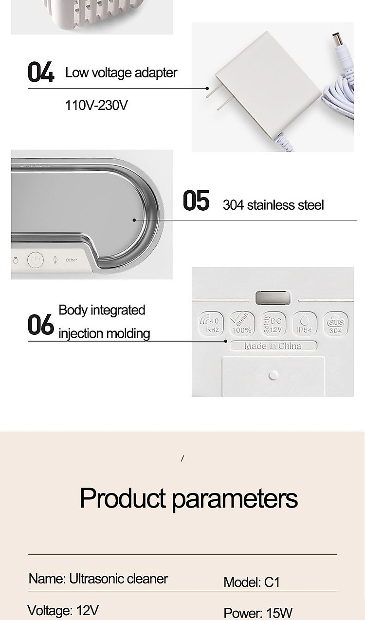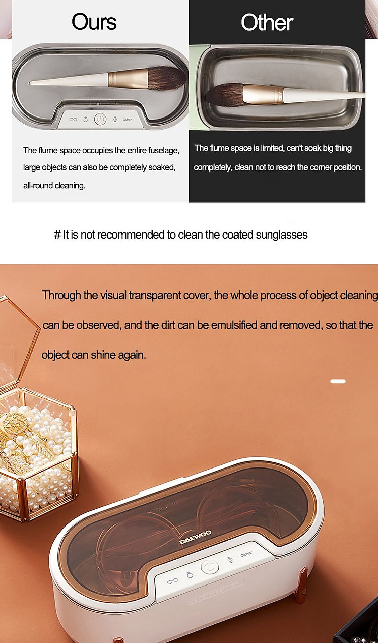 Portable Ultrasonic Cleaner 40kHz Glasses Cleaning Machine Jewelry Watch Cleaner Personal Care Tool Waterproof Cleaning Device