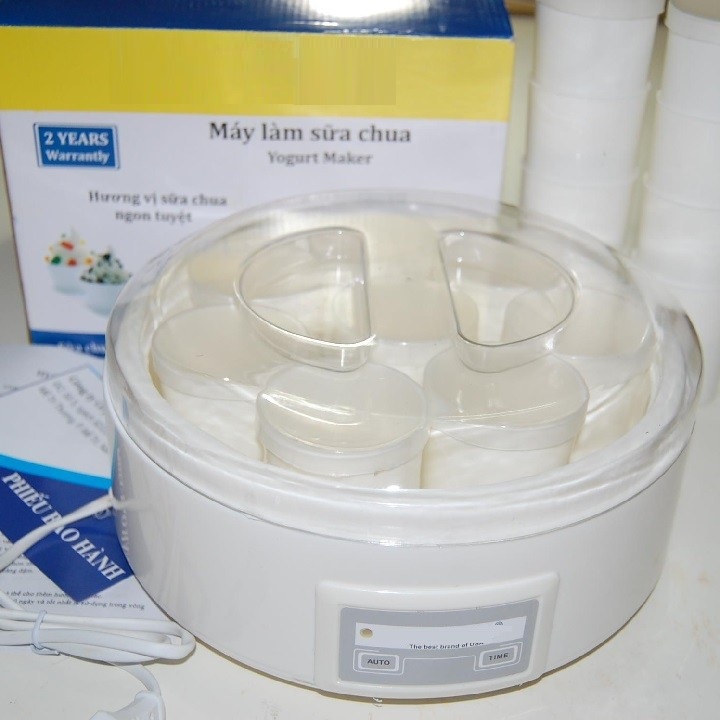 Thao tác sử dụng máy vô cùng đơn giản, bạn chỉ cần pha sữa tươi và sữa chua có sẵn theo tỷ lệ, đổ vào các cốc đi kèm với máy, cắm công tắc điện của máy, sau khoảng 5 - 7 giờ ủ thì cất vào ngăn mát tủ lạnh, đợi sữa chua đông lại là có thể mang ra thưởng thức.