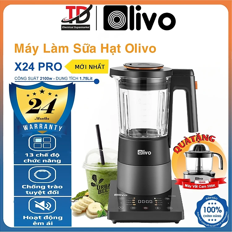 Máy Làm Sữa Hạt Olivo X24 Pro, Mâm Nhiệt Gốm Công Suất 2100w, Sấy Khử Khuẩn - Tạm Dừng Khi Nấu, Hàng Chính Hãng