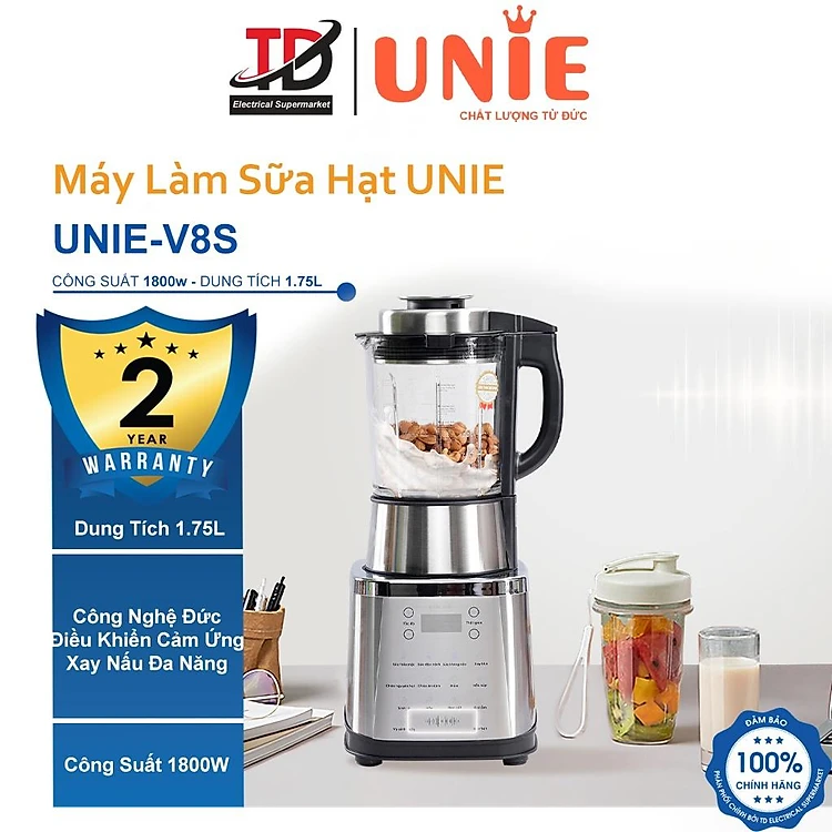 Máy Làm Sữa Hạt Unie V8S, 1.75Lit-1800W, 12 Chức Năng Xay Nấu Đa Năng, Hàng Chính Hãng