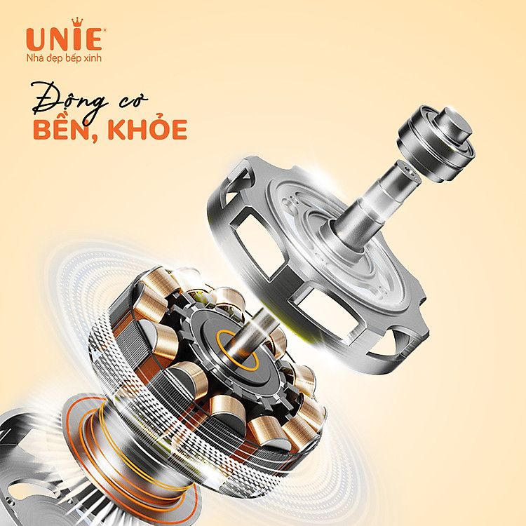 Không chỉ khoẻ mà còn bền, Unie VX được trang bị động cơ đồng mạnh mẽ để có thể xay nhuyễn các loại thực phẩm từ củ quả, đậu, hạt, thịt,…. Động cơ SR9 là cốt lõi để tạo nên phiên bản máy làm sữa hạt mạnh mẽ nhất từ trước đến nay.