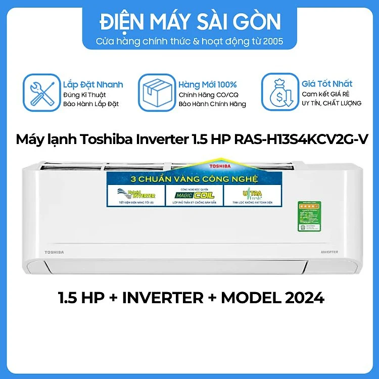Máy lạnh Toshiba Inverter 1.5 HP RAS-H13S4KCV2G-V - Hàng chính hãng (chỉ giao HCM) - TỰ LÀM SẠCH - KHÁNG KHUẨN KHỬ MÙI - LỌC BỤI MỊN