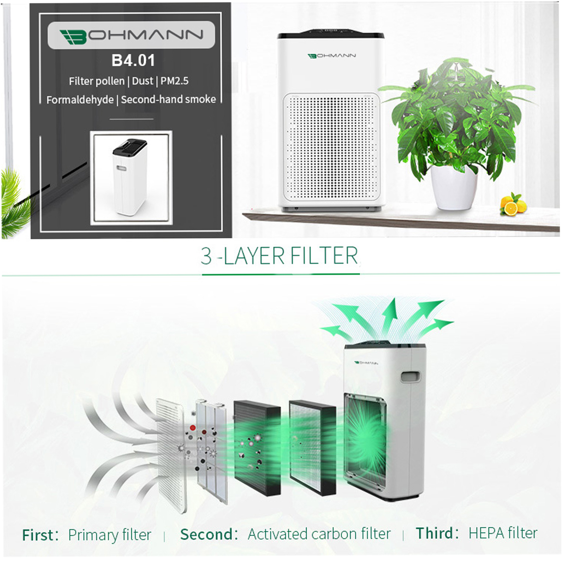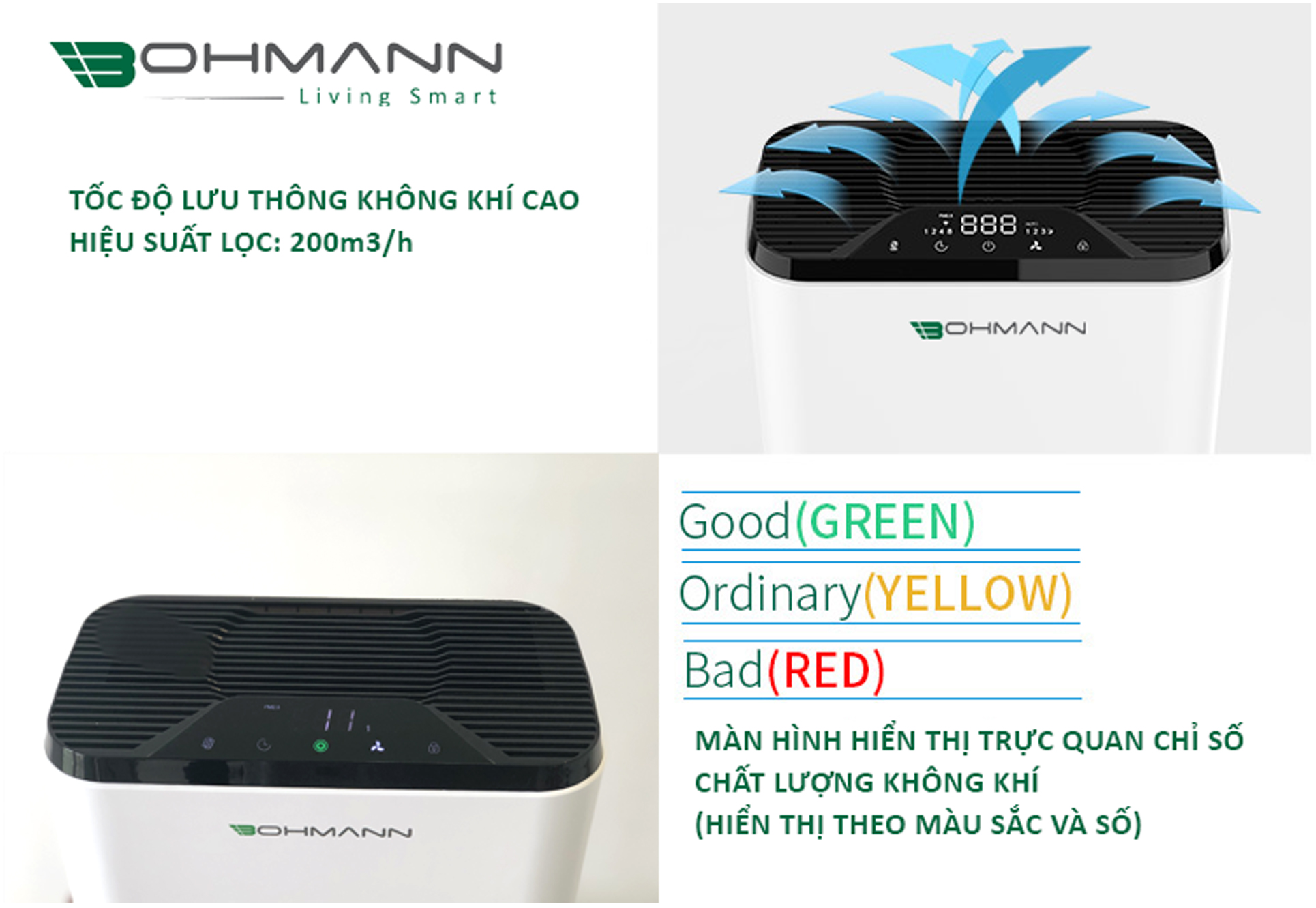 Máy lọc không khí thông minh Bohmann - Bảo vệ toàn diện sức khoẻ gia đình bạn
