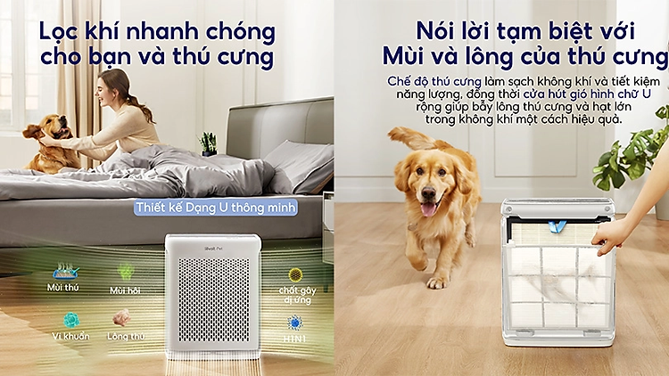 Với thiết kế cửa hút gió hình chữ U tiên tiến, máy lọc Levoit Vital 100S cho phép lưu thông gió và hút lông thú cưng một cách dễ dàng từ mọi phía. Khác với thiết kế khép kín thông thường, thiết kế này giúp máy lọc không khí có khả năng tiếp cận và loại bỏ lông thú cưng hiệu quả hơn.