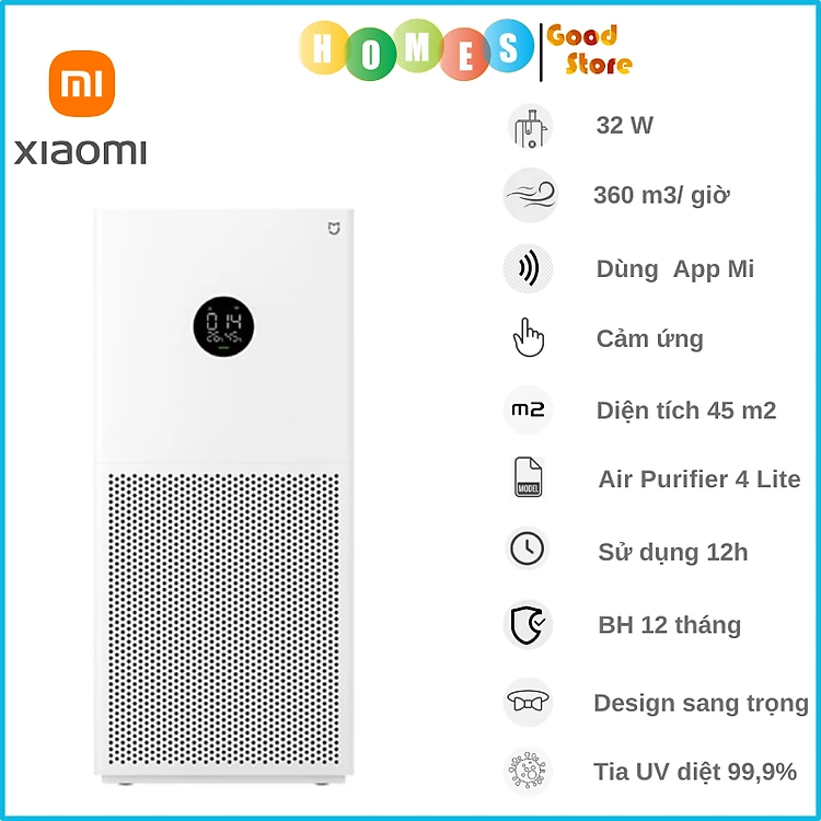 Máy Lọc Không Khí XIAOMI Mi Air Purifier 4 Lite Lọc Bụi Mịn Kết Nối App, Phù Hợp Không Gian 45 m2 - Hàng Chính Hãng