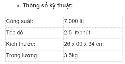 Nguồn nước: Nước máy, giảm đáng kể độ cứng ( cặn trắng Canxi ở mức thấp)