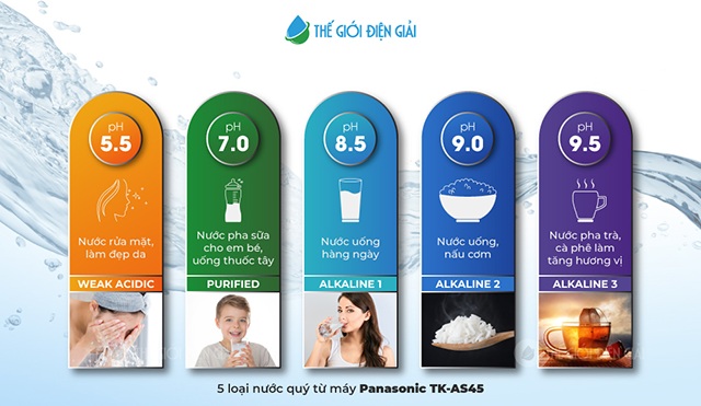 3. 5 loại nước THIẾT YẾU của máy lọc nước điện giải Panasonic TKAS45 Nhật Bản