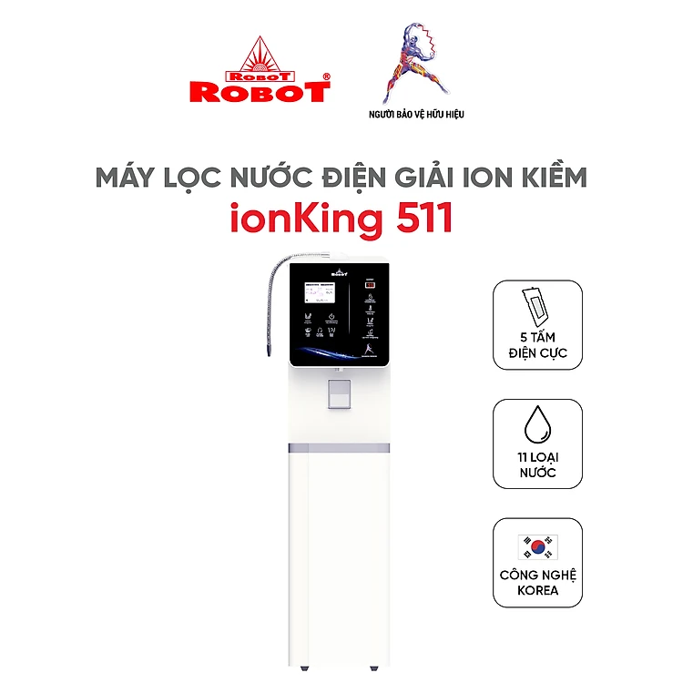 Máy Lọc Nước Điện Giải Ion Kiềm ROBOT IonKing 511 Chế Độ Nóng Nguội Lạnh 5 Tấm Điện Cực Titanium Phủ Platinum - Hàng Chính Hãng