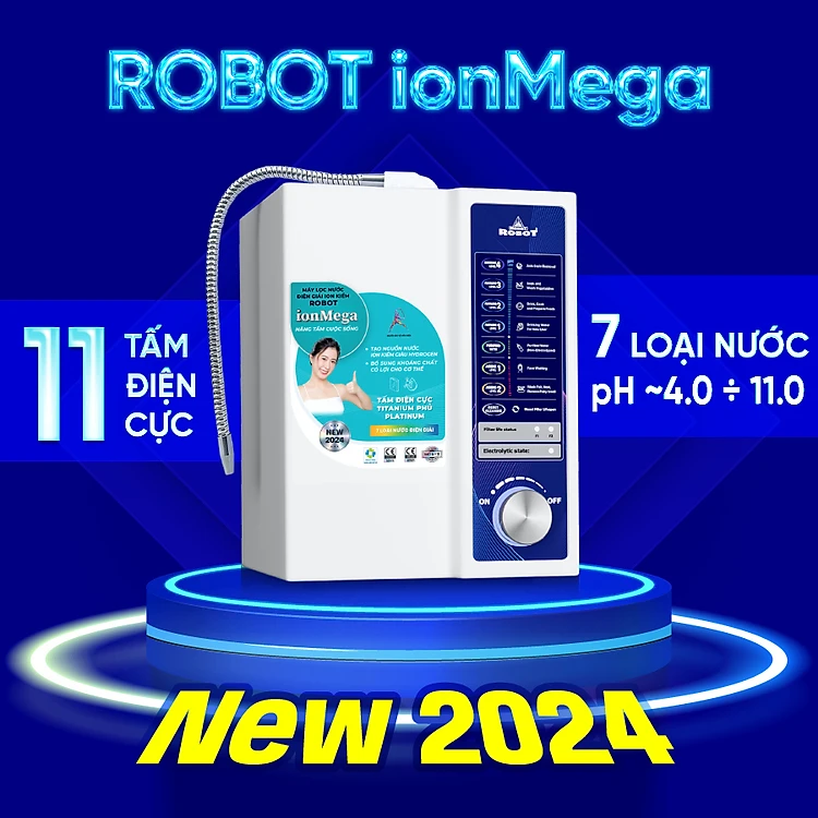 Máy lọc nước điện giải ion kiềm ionMega – thiết kế mới nhất, độc đáo siêu tiết kiệm với đầy đủ công năng của một máy điện giải ion kiềm đạt chuẩn quốc tế. ROBOT ionMega được thiết kế tối giản, nhỏ gọn, thao tác lấy nước trong một lần chạm, đáp ứng nguồn nước điện giải ion kiềm 24/24 tốt cho sức khỏe & sinh hoạt.
