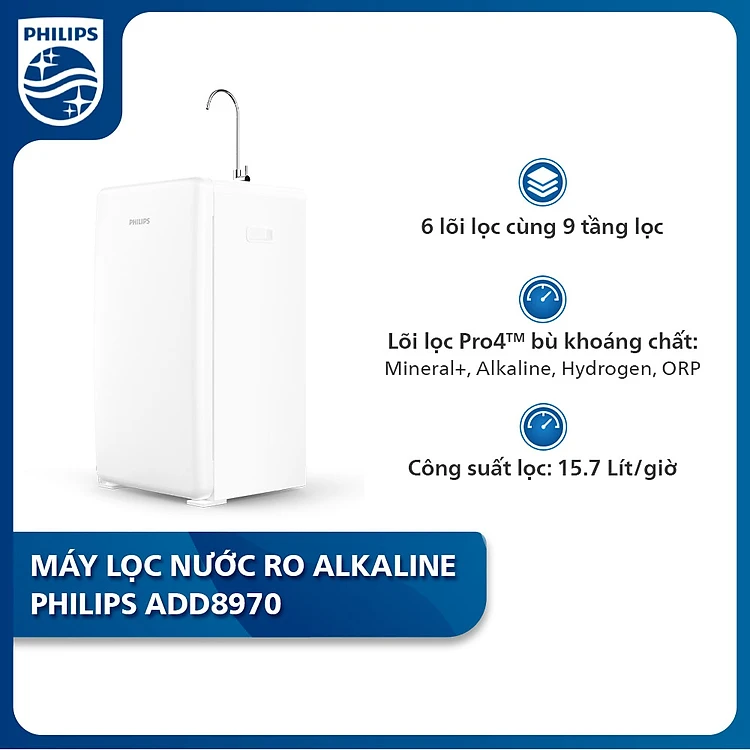 Máy lọc nước RO Alkaline Philips ADD8970 với công nghệ độc quyền giúp bảo vệ nguồn nước sinh hoạt và sức khỏe gia đình bạn.